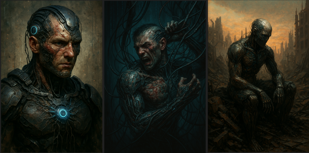 From flesh to firmware, from pain to protocol — Cyber-Warrior Triptych is a high-resolution digital art bundle that explores the psychological and physical transformation of the post-human fighter.